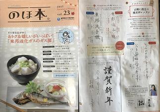 東邦液化ガス梶uのほ本。」 2015年10月に、東邦液化ガス株式会社季刊誌「のほ本。」〜のほほんレッスン〜のコーナーに”日常に役立つ美文字レッスン”ということでお手本やアドバイスを提供させていただきました。